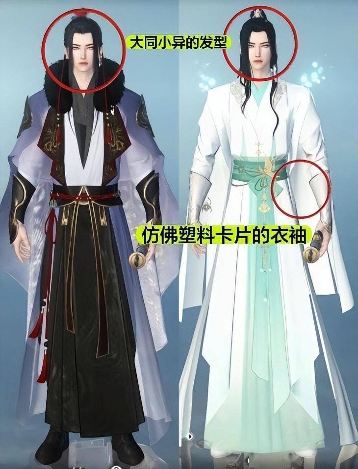 比如《逆水寒》中许多男角色的服装以及发型都大同小异,几乎无法分辨出不同角色的特点。