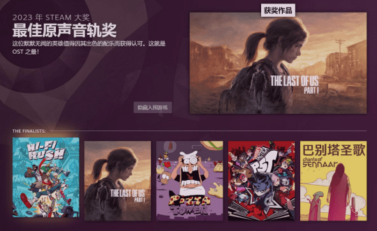 最后要提到的是最佳原声音轨游戏得主《最后生还者:重制版》,客观来说这款游戏的争议并没有上述三款游戏那么大,但《最后生还者:重制版》本质上是对2013年《最后生还者》的高清优化。当时这款游戏就获得过类似的奖项,此番再度获奖多少显得有些奇怪。