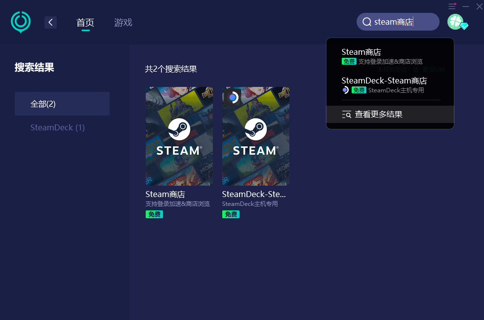 二:点击即可优化网络,流畅解决steam商店黑屏/报错问题