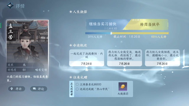 变为了和这些AI队友结交、聊天、互动,直到影响他们在的人生规划,深入的参与到整个江湖当中,现在的《逆水寒》手游社交,不单单只有玩家之间的交往,AI也成为了其中的重要组成。