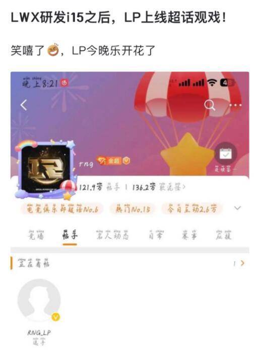 大家看到RNG输了之后,超话里面都闹翻了,大量网友出来抨击他们,这时候有细心的网友发现,替补AD选手LP也来查看这些内容了,他上赛季还是首发,LWX来了之后,他只能当替补,可能也不甘心吧。