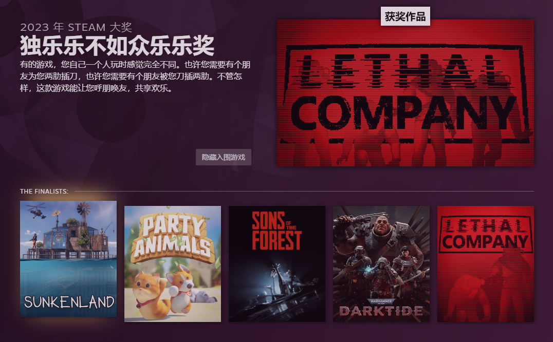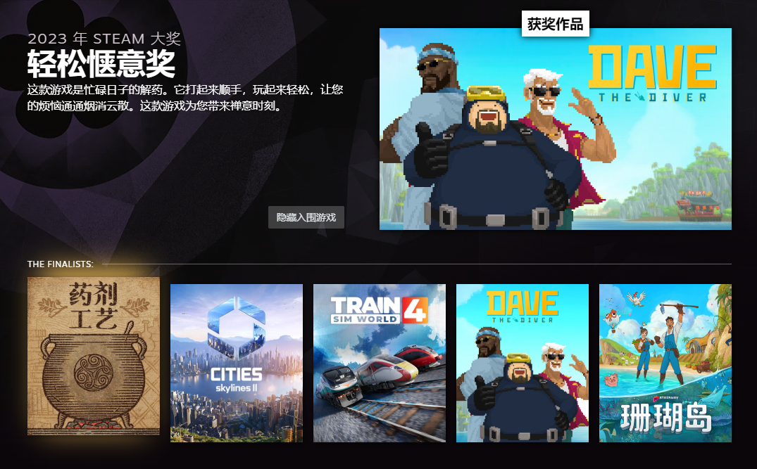 这份代表Steam上众多玩家喜好的获奖名单,是否符合你的口味呢?