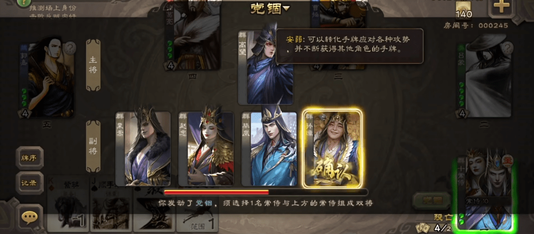 剩下几个人技能都是通用性比较高的技能,像张让、高望、郭胜不管搭配谁都是可以的,而孙璋这个就需要搭配过牌才能完美发挥。