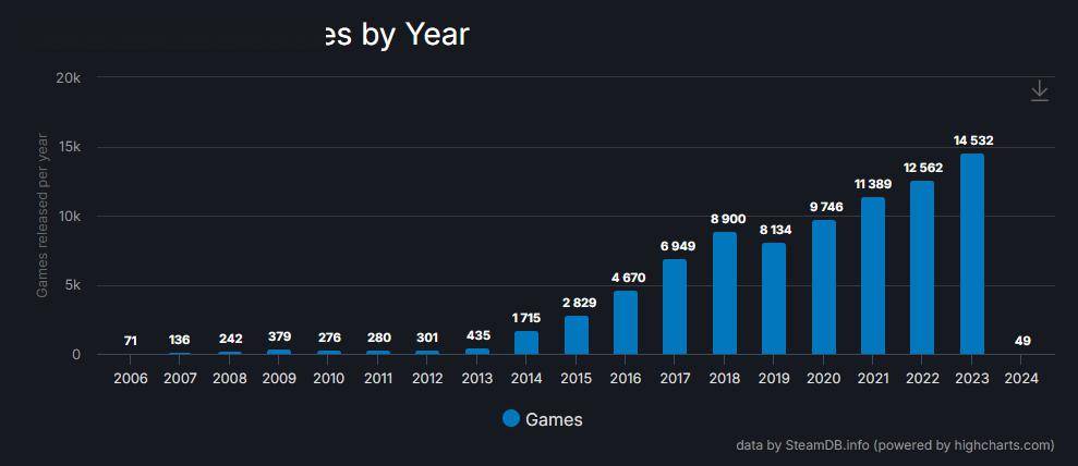 这对于Steam而言无疑是好事,丰富的品类和数量更确立了Steam作为游戏平台无可撼动的地位,为其引入更多的玩家。只是对于独立游戏开发者来说,这或许不算是个好消息——要想在茫茫竞争者中脱颖而出得到玩家注意,难免需要他们花费更多的心思了。