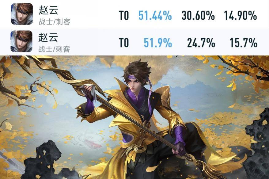 而之前提到的李白,虽然在新赛季后有一波涨幅,但后劲不足,目前的排位胜率已经从53.15%下跌至52.3%。至于赵云则有小幅上涨,排位胜率已从51.44%上涨至51.9%。