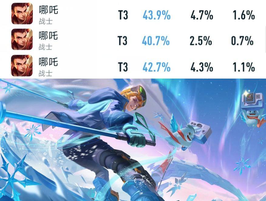 最稳定的英雄还是我们的小哪吒,排位胜率仅有43.9%,依旧是全英雄里面最低的一个,并且还是排位胜率、巅峰赛胜率(40.7%)、顶端排位胜率(42.7%)皆为垫底,看来哪吒是真废了,需要策划的拯救。