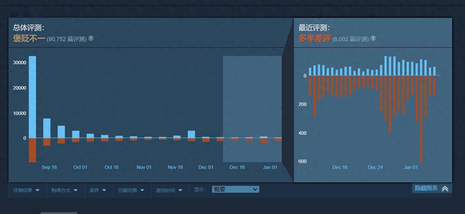 目前,该游戏已收到超过9万条评价,其中超过40%为负面评价。然而,这些评价似乎很快失去了真实性,因为其中许多评价都基于最简单的理由攻击游戏。