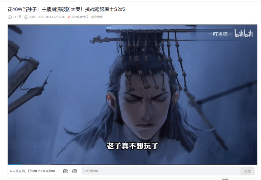 00后主播“—叮当猫—”是《率土之滨》的头部主播之一,做过的率土视频播放量超过了1375万。他在一期视频中崩溃破防大哭,道出了肺腑之言,哭诉他被好友邀进率土之后十分上头,氪了接近50万但还是被暴打。
