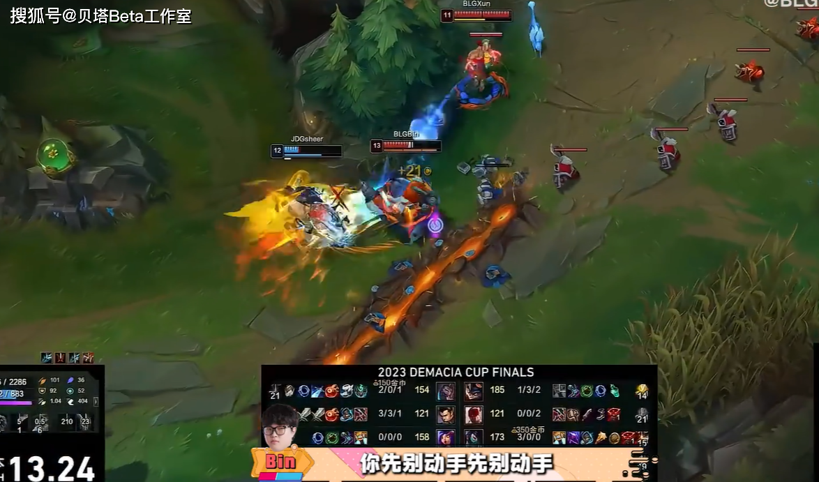 德玛西亚杯总决赛结束后,BLG成功打破魔咒,在和JDG的第九次交手中终于取胜,拿下了这场久违的胜利。虽然JDG不是完全体,但是从比赛的表现来看,BLG全队状态不错,配合也很好,明年春季赛他们肯定是LPL的强队之一。不过赛前放话要在这个BO5中单杀sheer至少5次的bin,没能兑现承诺,反而还被sheer单杀了一次,回到基地直播时,bin也回应了这件事情。