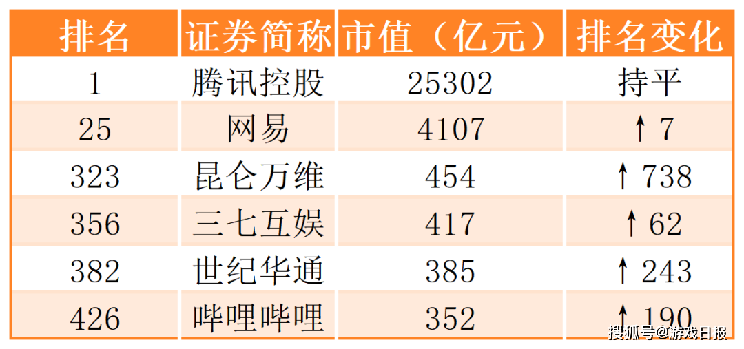 关于游戏公众公司市值排行榜