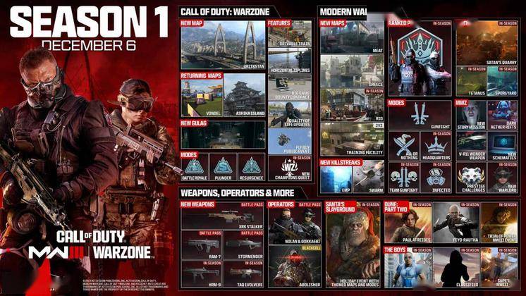 对于《战区》来说,第一赛季“重载”更新将带来回归的武器箱活动以及去年的冠军任务核武器挑战。还有一个名为“隐蔽撤离”的全新功能。而游戏的多人模式还将获得本赛季的第三章地图“里约”。该地图为 6v6 标准“中小型”地图。
