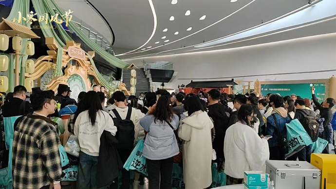 更不用说,每到一个新的场景,玩家都可以通过完成“日课任务”来获得盖章,集满五个章,即可在现场兑换重达五斤的“小寒国风节”限定伴手礼。里面装满了《逆水寒》的精美周边,就连包装袋上也特意强调了“啊!这是逆水寒送的!”“真能装”,可谓排面和性价比双重拉满——来了不拎一袋回去,恐怕都对不起官方这波高强度“撒币”的豪放心态。
