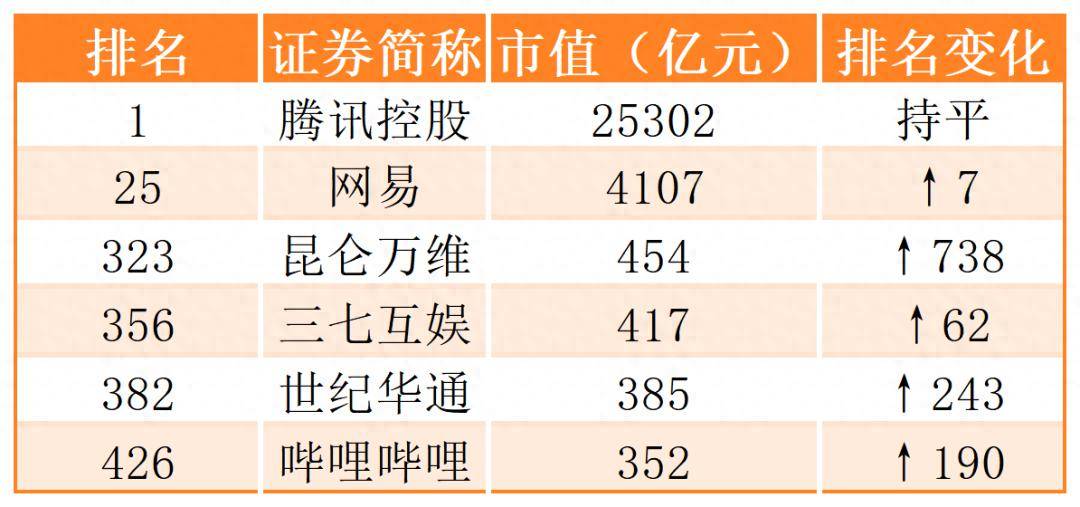 Wind最新发布的“2023年度中国上市企业市值500强”榜单,游戏公司共有腾讯控股、网易、昆仑万维、三七互娱、世纪华通、哔哩哔哩等六家公司入选。