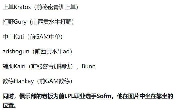 然后下路双人组中,AD是shogun,他是前西贡水牛AD,然后辅助有两位选手,首发是Kairi,他是前秘密青训辅助,还有另一位是Bunn,教练是Hankay,他是前GAM教练,整体来说还是不错的。