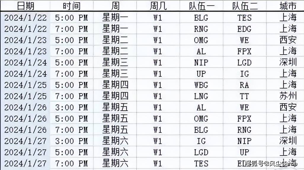 LPL春季赛,在1月22号开赛,目前官方还没有公布赛程,不过网上有一张赛程图被曝光,暂时不确定是不是真赛程,咱们先来看一下,被曝光的是第一周的赛程(年前一共打2周),周一至周五工作日,每天是2场BO3,周6也是两场,仅有周日,官方安排了三场BO3比赛。