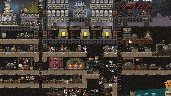 游戏的基本玩法类似于《缺氧》。在上下纵深铺开的大地图上,能够看到不同的地形资源,比如泥土、石块、草地等等。初期,玩家需要挖掘并规划出鼠王国核心区域的构造,比如卧室、清洁区域,以满足招募来的鼠市民的基本要求。之后,为了获取更多资源、建设更多必要的建筑,玩家需要把领地慢慢向外延展。