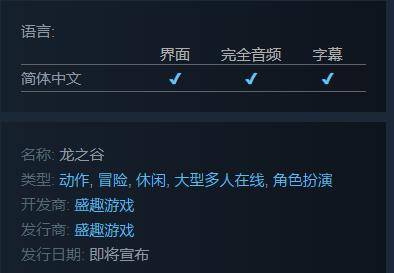 经典网游《龙之谷》即将登陆Steam,目前商店页面已上线,发行商为盛趣游戏,计划发行日期为即将宣布,语言仅支持中文。