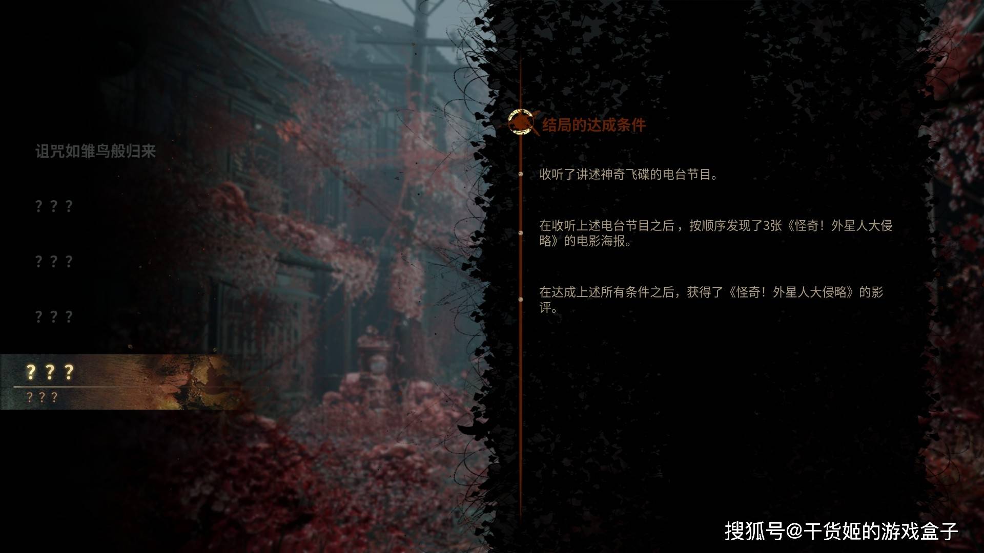 在恶结局《诅咒如雏鸟》般归来,伴随再次听到的由寂静岭系列曲神—山冈晃的《徘徊之歌》(由日本童谣《花嫁人形》改编而来),配上字字泣血般的暗红色歌词。被日本昭和时代封建家庭压迫迫下的走向末路女孩的命运,让自己当内心如同被重锤狠狠敲了一下,久久不能平静。