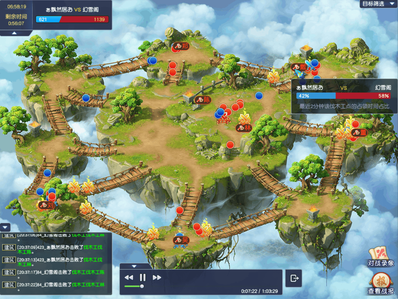 在建设环节中,【幻雪阁】充分学习了【折戟沉沙】的战术,他们靠着单人拖队、分散伐木等操作,于比赛第7分钟时就领先了【ぁ飘然居お】500点左右的建设度。而且,从伐木工归属来看,【幻雪阁】已经占据绝对优势。
