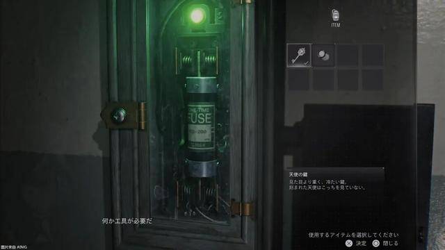 离开病房之后前往走廊,可以看到一个需要按下电钮才能打开的铁门,但是要打开铁门则需要找到另一个缺失的保险丝。这个确实的保险丝可以在有着天使浮雕门的房间内找到,但要打开盒子还需要找到螺丝刀才可以。这是《生化危机》系列较为典型的解谜关卡设计,经过一番探索后可以在这个房间里获得打火机。这一作仍然强调通过光影来渲染恐怖气氛,所以大部分环境如果没有开灯的话都还是比较昏暗的。空间上来说并不会对没有照明的道路进行封锁,但从心理和下意识判断来看幽邃的环境会让人无法踏足其中,所以有一个打火机照明能起到很大的帮助。