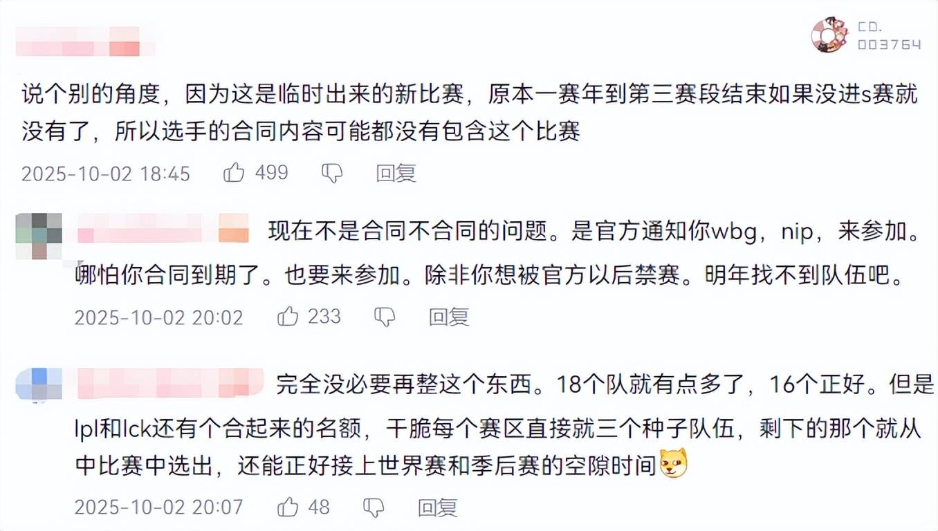 从Doinb透露的意思来看,这个亚洲邀请赛很有可能是临时起意举办的,并且比赛哪怕夺冠了,奖金也归属于俱乐部,并不会分给选手。所以,对于那些签约选手来说,这个比赛就纯纯是加班了,不在合同范畴内,却硬是要打完。