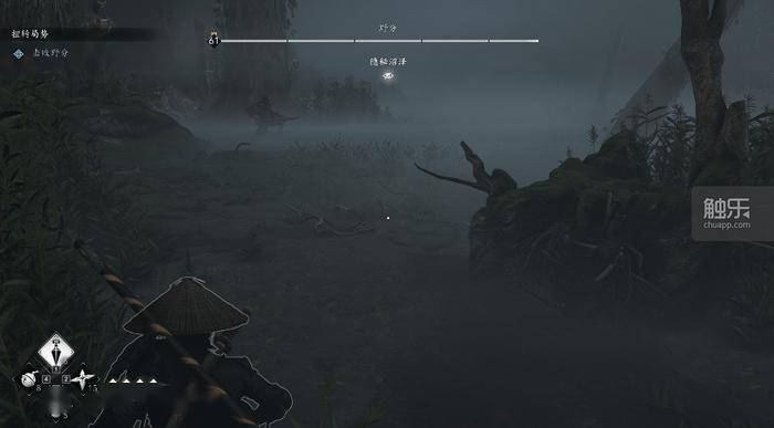 野分的Boss战设计得很有意思,实际游玩体验却有些不尽人意。比如战斗环境,沼泽中雾气缭绕,虽然我明白制作组想要塑造一个波谲云诡的环境,但DLC的优化其实并不算好。如果电脑配置不高,玩家很有可能在这个场景里帧数骤减,转头卡顿踩到陷阱,随后被野分的暗器秒杀。