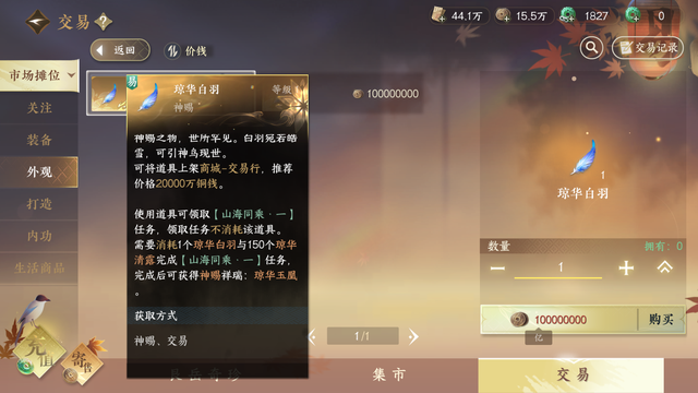 首先,《逆水寒》手游的顶级外观,不是想买就能买的。玩家们需要先使用传说中神品“银河星纱”及“琼华白羽”来领取任务,之后才能花费天赏石兑换任务材料。