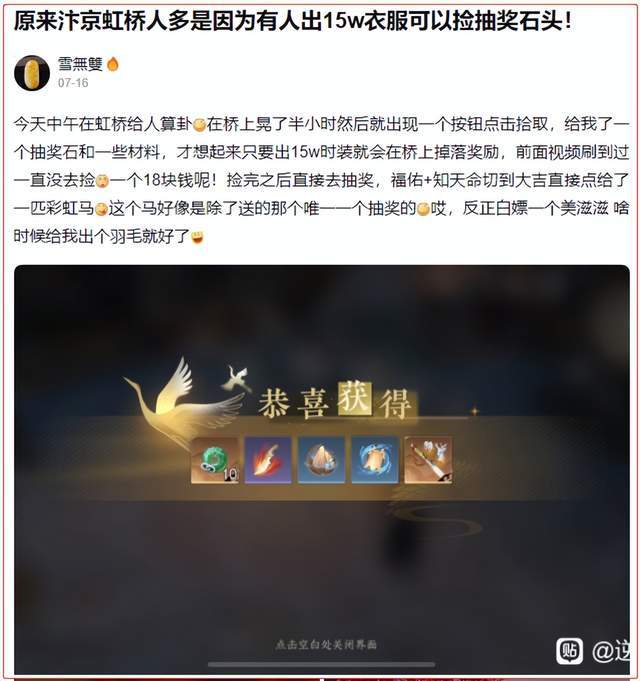而无论是“银河星纱”还是“琼华白羽”都是完全随机掉落的,也就是说,土豪想要获取,只能以超高价格跟有幸获得的普通玩家购买,等于衣服还没做,就要先给幸运玩家包一个大红包。