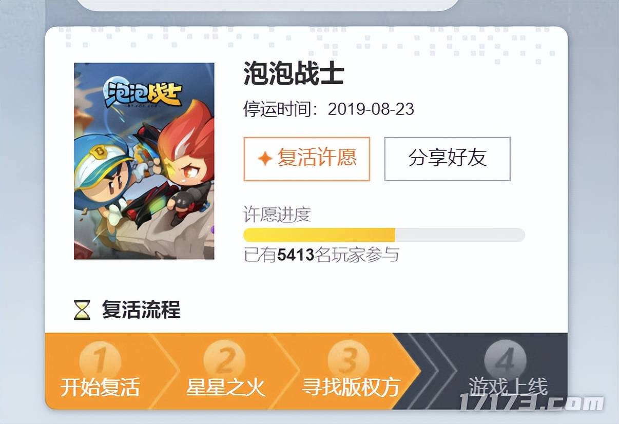 在我们发起的「停运游戏复活许愿」活动中,《泡泡战士》的人气表现格外亮眼,目前已累计许愿票数突破5413票,成功跻身「最受玩家期待复活网游」榜单前列。