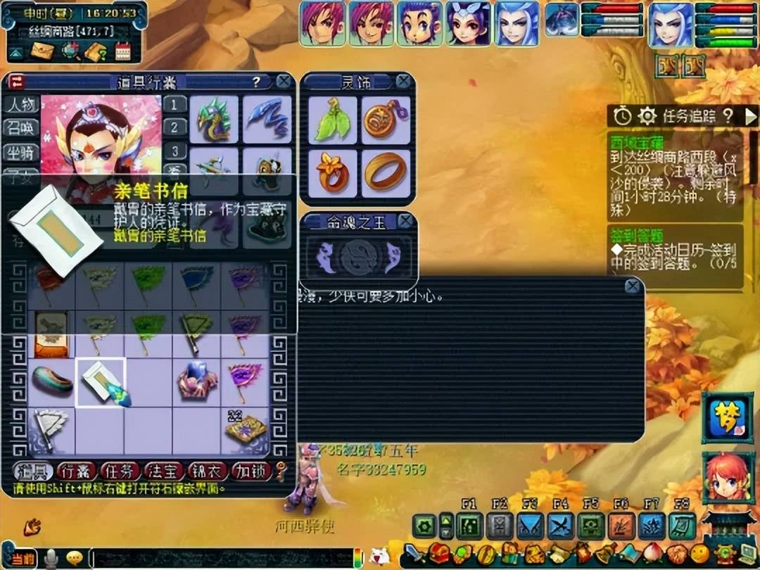 随后原地看看河西值守是否受伤,并把亲笔书信给其手上,并完成单人小游戏。这个小游戏是看图挑选对应头像(正确答案如上图),有错误也没关系,可以反复完成,当你全部正确,则获取一点成就。完成后进行告别,接着去月牙泉(280.20)【注意避让风沙】,再次遇见丝路贾人(285.35),没想到其再次头疼。