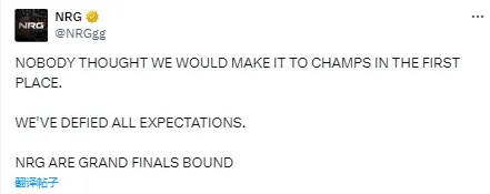 在赛后的社交平台上,NRG官方也发文称: