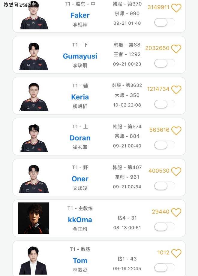 开局就是王炸,第一场对决热度就直接拉满了,粉丝们肯定是希望双方战队上演精彩的对决,无论哪一支队伍进入到正赛都是意料之中的事情,毕竟这两支队伍的潜力都非常的大。本以为这段时间双方战队的训练强度会非常的高,但是感觉大家都比较松懈,第三赛段的对抗结束之后都进入到了一段时间的休赛期,选手们的韩服账号更新的频率很低,基本上没有训练。查看了一下T1战队的训练情况,发现只有keria在这几天里登录了账号,其余的选手账号都停到了21号。
