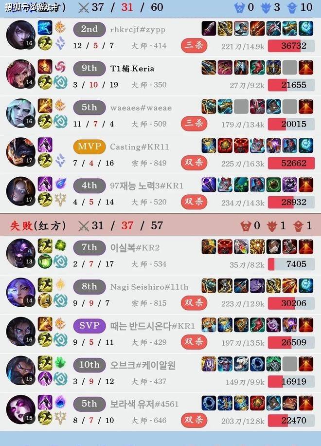 在这几天的训练中,keria使用了几个令玩家比较意外的辅助英雄。首先是辅助奎桑提,这个英雄一般是出现在上单位置,基本上没有在其他位置出现过,他练习这个英雄带的也是启封的秘籍,战绩还算不错,同时还使用了打野英雄蔚辅助,虽然这局比赛赢了,但是他确实作用不是很大,丛刃引燃的天赋一身输出装,感觉在辅助位置有一点四不像啊。作为lck赛区的k博士,确实应该提防着他的一些套路。