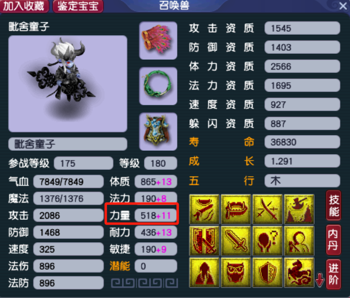 召唤宝宝的时候为主人提升部分能力
