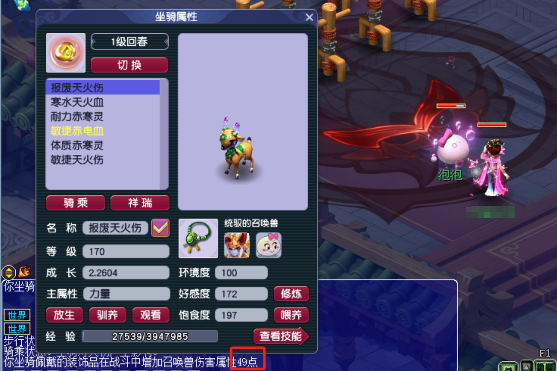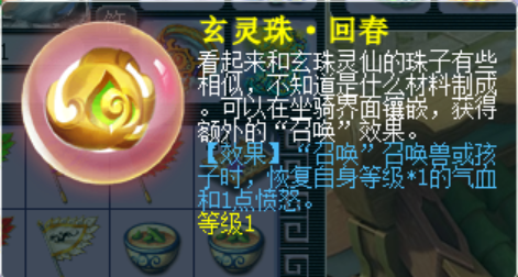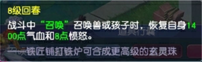 回春的效果是召唤宝宝后恢复主人气血和愤怒