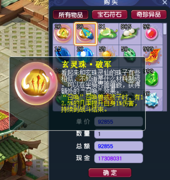 价格和符石、灵石的价格类似