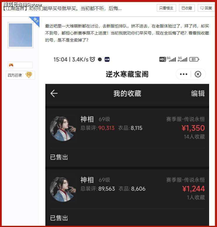 在大量萌新玩家纷纷闻讯而来,20多万老玩家同时选择回流重建汴京城的情况下,逆水寒藏宝阁里的高性价比账号,很快就被一扫而空。
