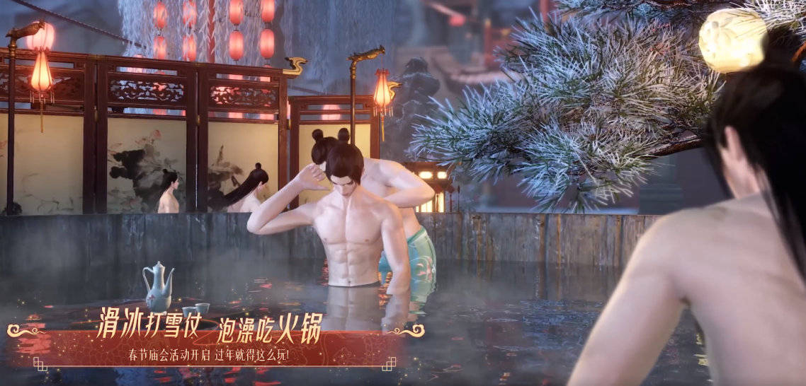 为了让玩家更有参与感,《逆水寒》手游还准备了各种具有北宋风情的民俗互动玩法,我们可以在游戏里放鞭炮发红包庆祝新年,也可以邀上好友一起逛庙会、滑冰,甚至还能喝新年限定热糖水、吃团年饭、煮火锅、泡冬澡,甚至互相搓澡,这个新年一定令人难忘。