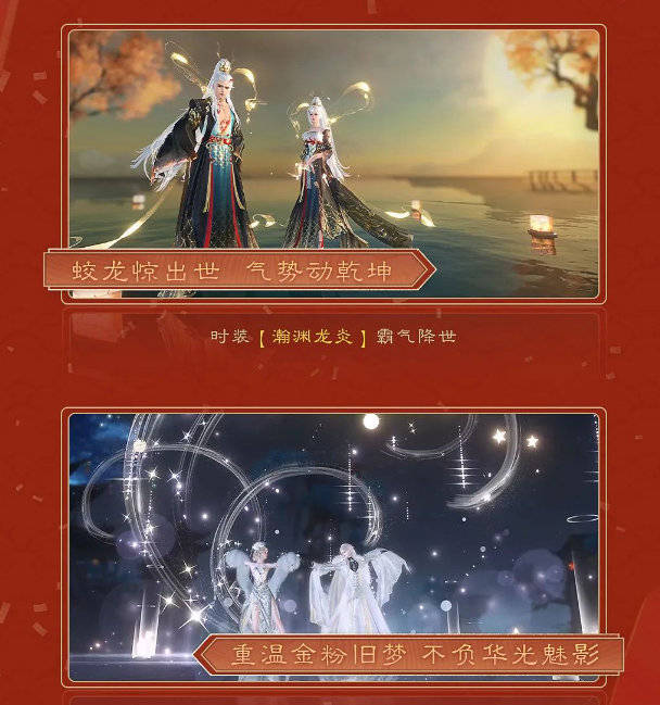 《逆水寒》手游的新春惊喜可不止这些,另外还有瀚渊龙炎时装、衣香鬓影时装、守心镇魔武器皮肤、醒狮轻功皮肤等极具特色的时装和外观上新,让我们在龙年散发更迷人的魅力。