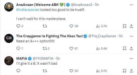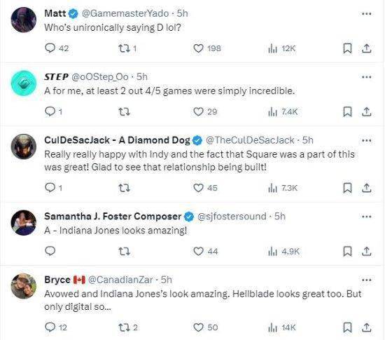 评论区内,多数玩家表示《夺宝奇兵》十分亮眼,因此可以给本次Direct打出“棒极了”的A评级。