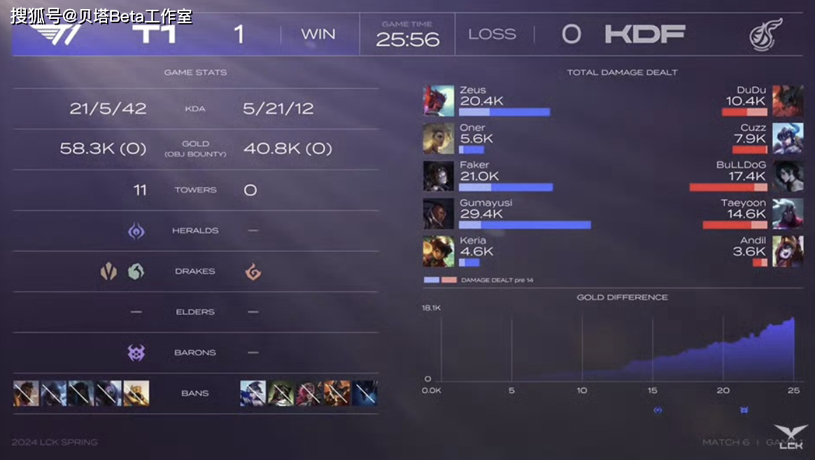 LCK春季赛常规赛T1和KDF的比赛,最终双方大战2局之后,T1成功以2-0的战绩击败KDF,拿下了自己春季赛的首胜!