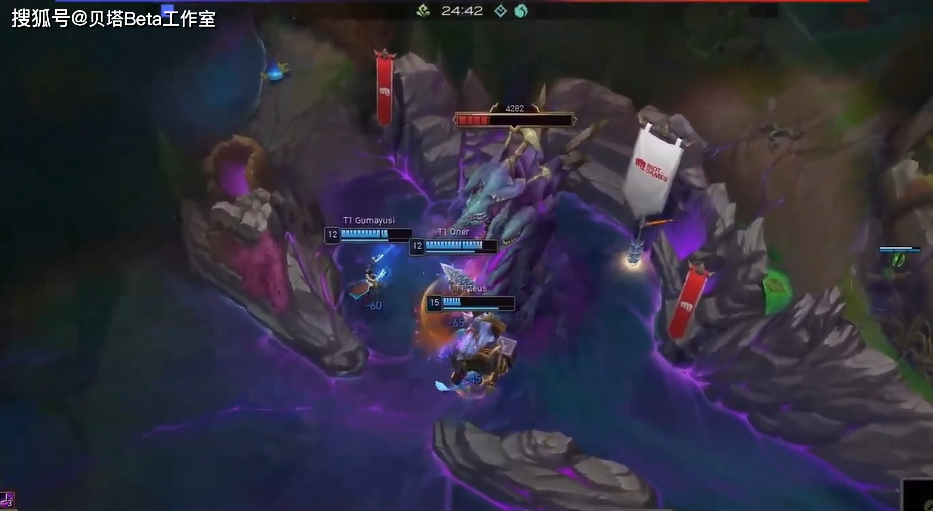 26分钟T1利用大龙buff推掉了KDF中路高地,撤退的时候cuzz蔚走位太靠前被击杀,T1回头击杀KDF四人后,拿下第二局的胜利。