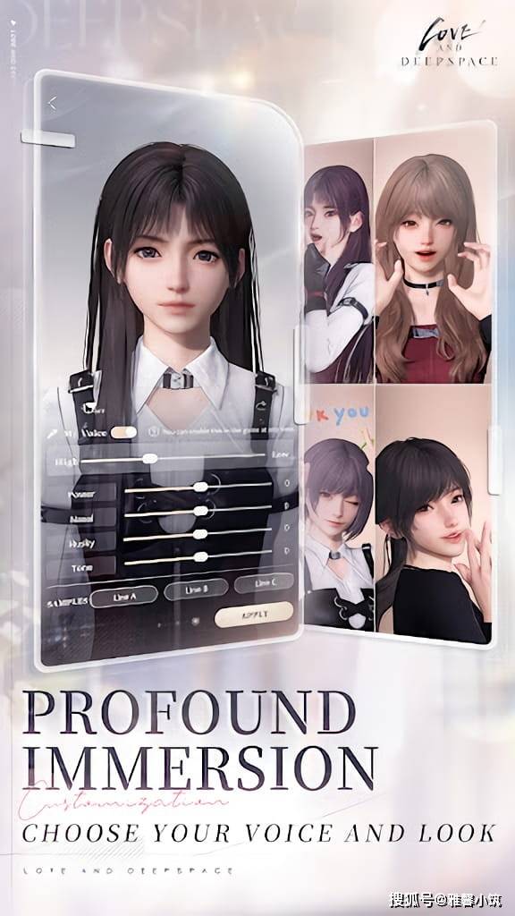《Love and Deepspace》作为一款3D模拟恋爱手游,从第一人称视角进入3D世界,通过3D场景约会,将浪漫的互动与冒险呈现在玩家米奇那。实时的3D渲染确保了栩栩如生的互动体验,游戏中的角色将全天候陪伴在玩家身旁,玩家将化身拥有超能力的深空猎人,与心爱的人一起抵抗神秘外形生物的袭击,拯救人类的命运。可定制的声音、造型等数十种外观细节,数百种妆容以及个性音色等一系列可定制功能将任您探索。