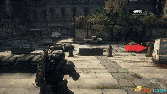 另外不要忘记在狙击手出现的这片战场区域,有一辆白色的面包车。