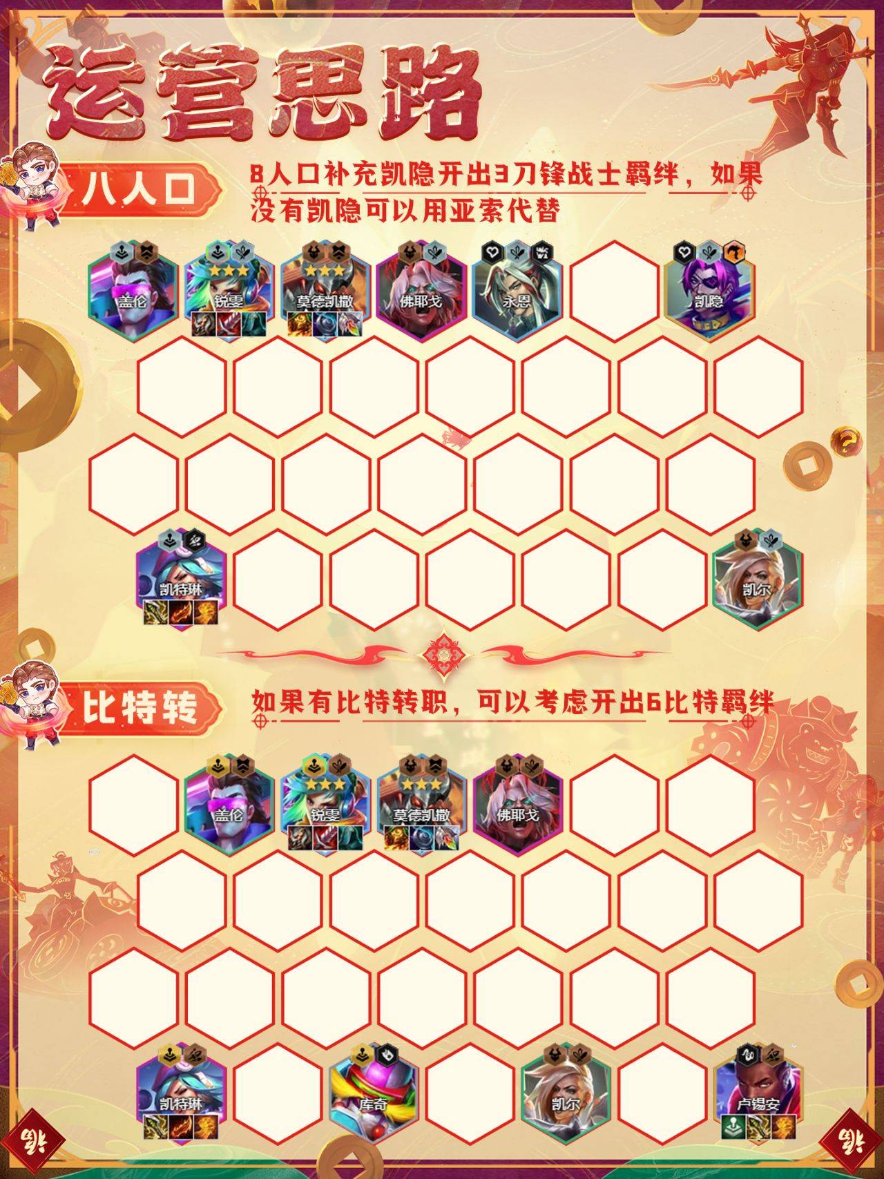 8人口补充凯隐开出5刀锋战士羁绊,如果没有凯隐可亚索代替。