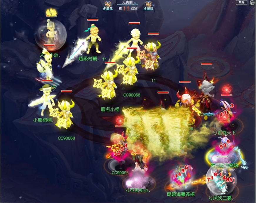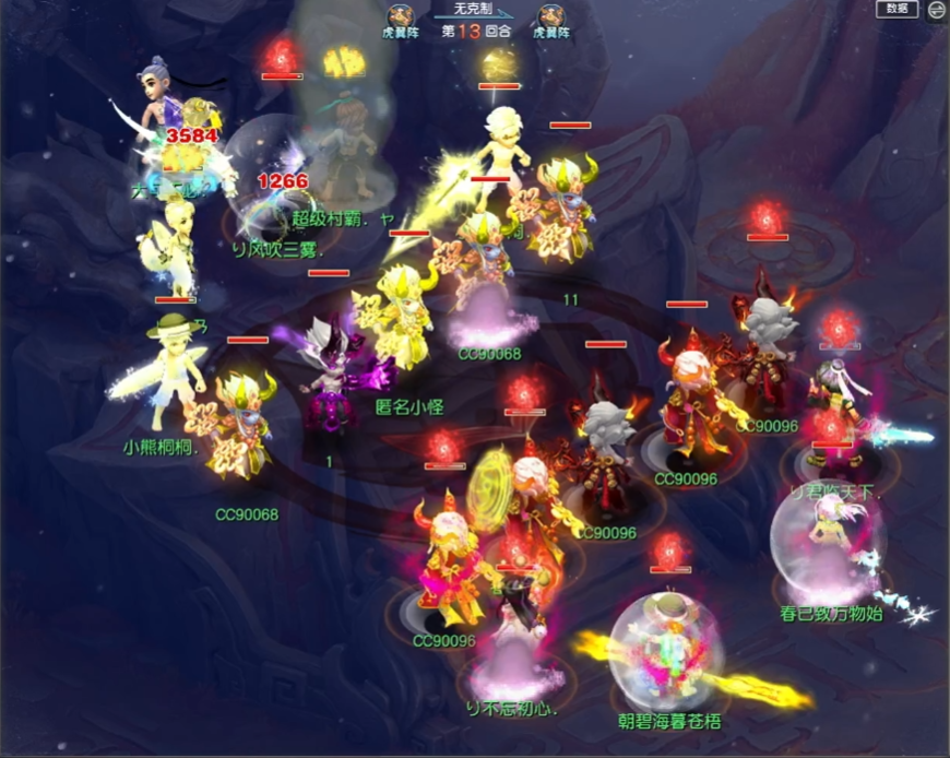 比赛第11回合,拿到优势的钓鱼岛有点着急,他们试图利用大唐官府破血搭配神木林风卷残云的方式压倒珍宝阁五庄观,但由于其抗性非常足,所以这波进攻只能起到压制血线的作用。