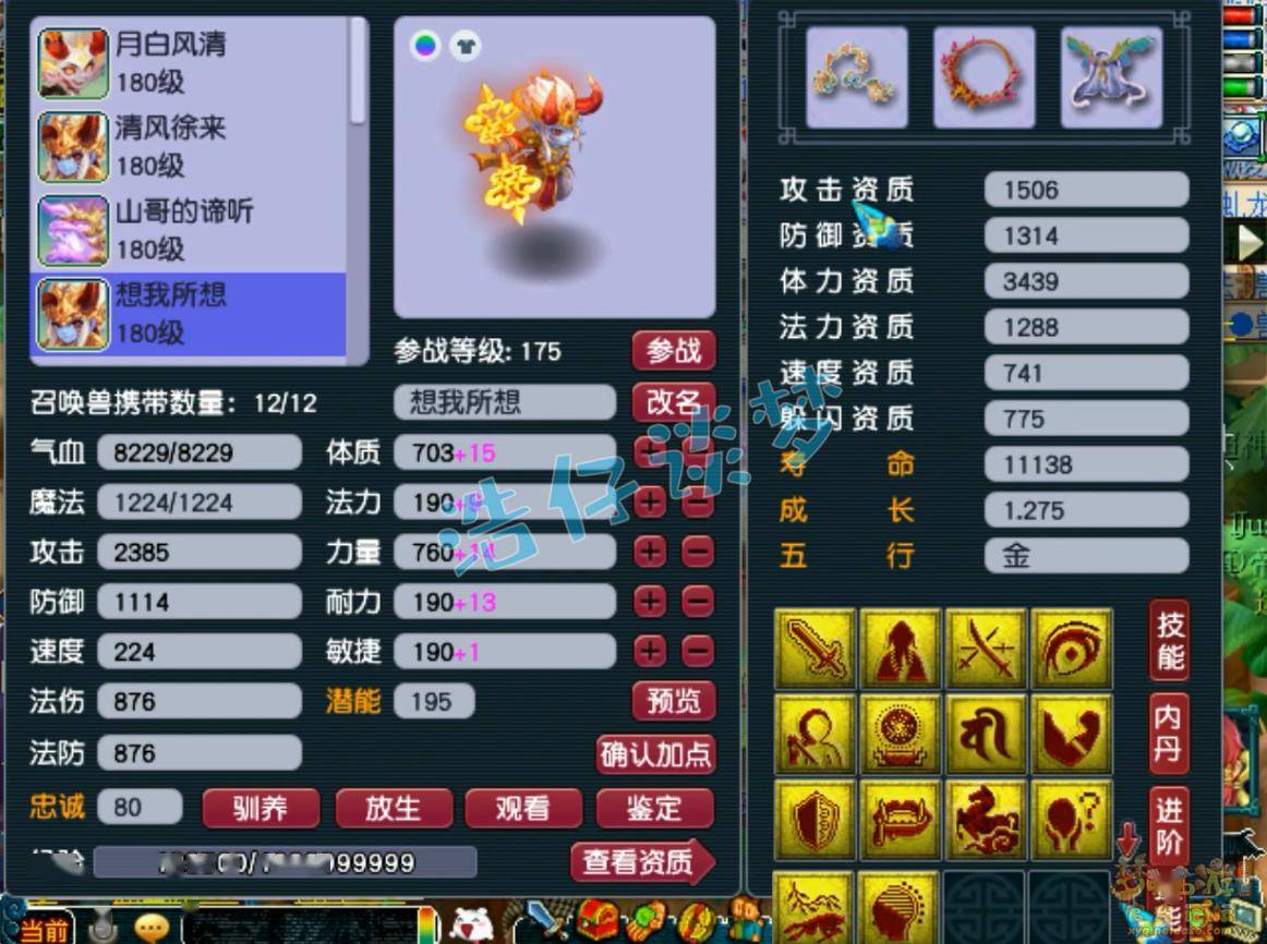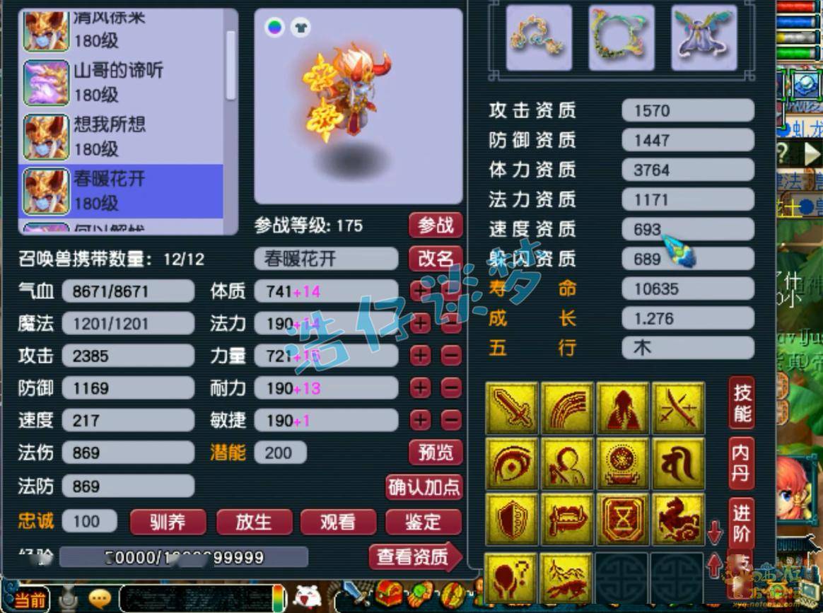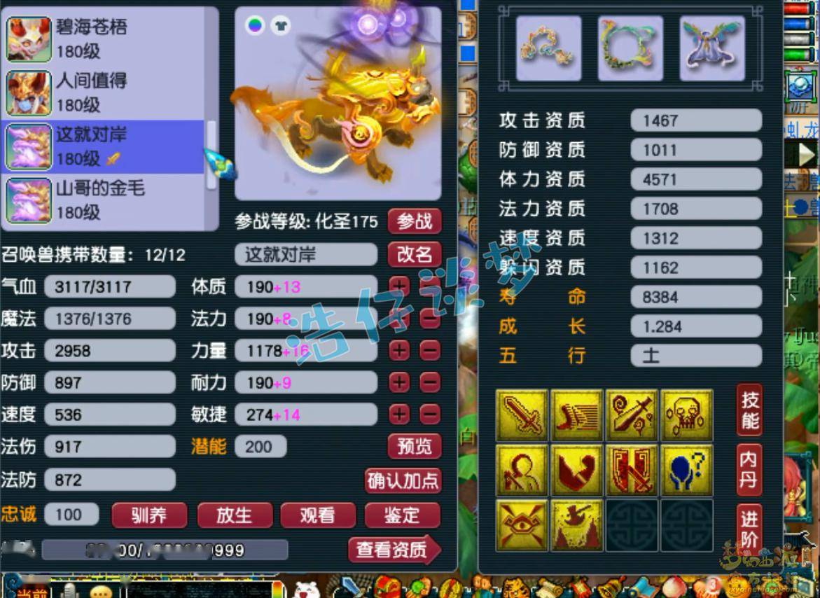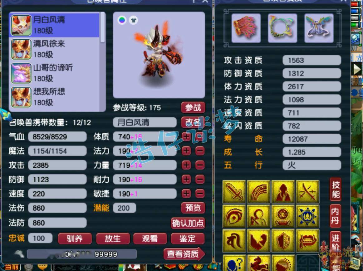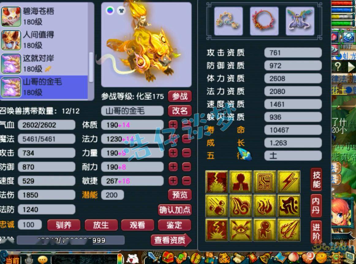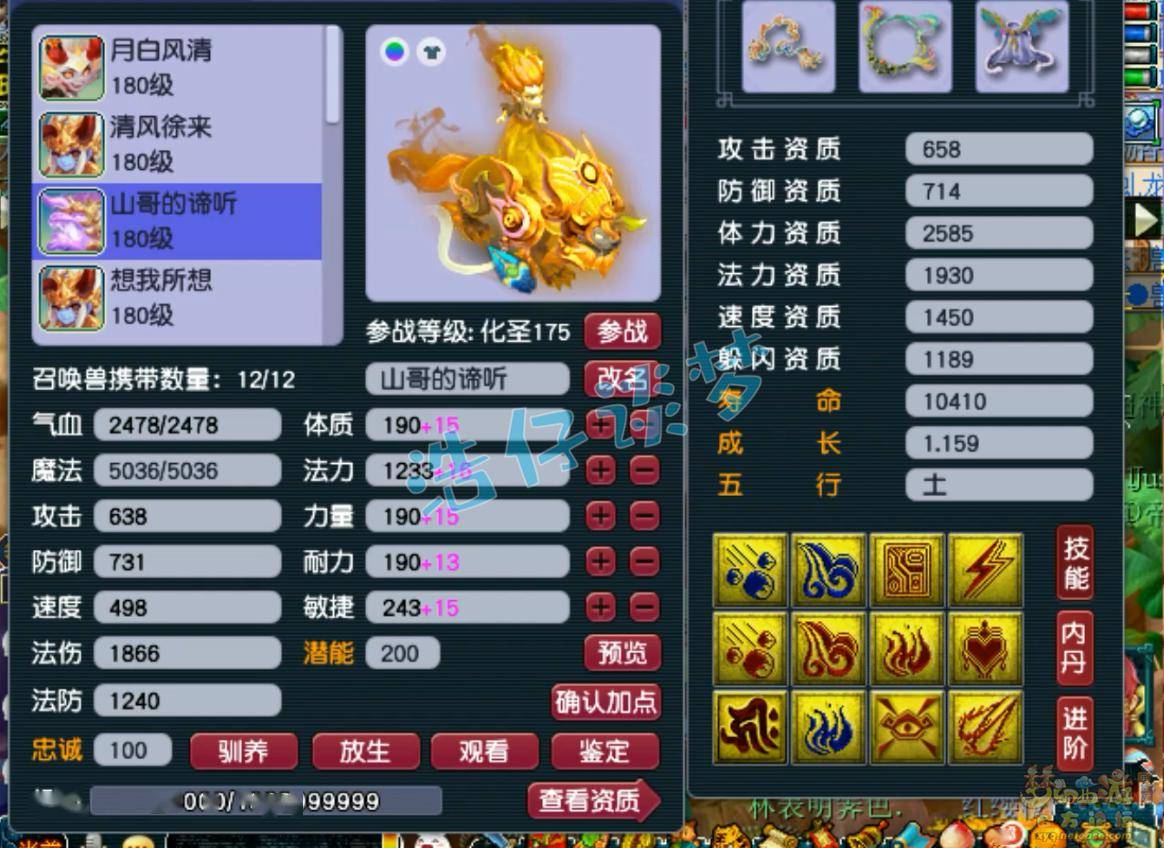 15技能神马净台善恶魔化童子,非常顶级的服战宠,成长资质也很不错!