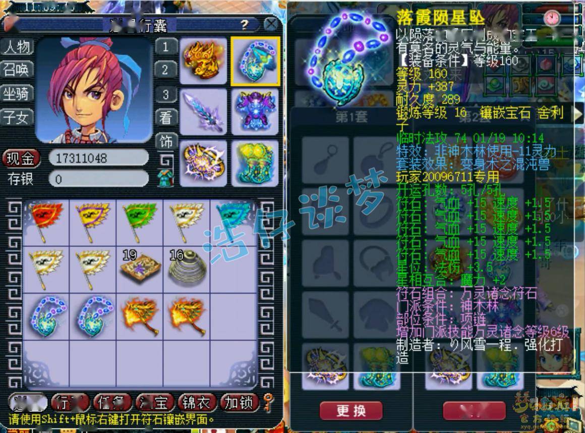 160级混沌兽套专用项链,初灵291,打了16锻舍利子,最重要的是神木林专用,不需要减灵力!