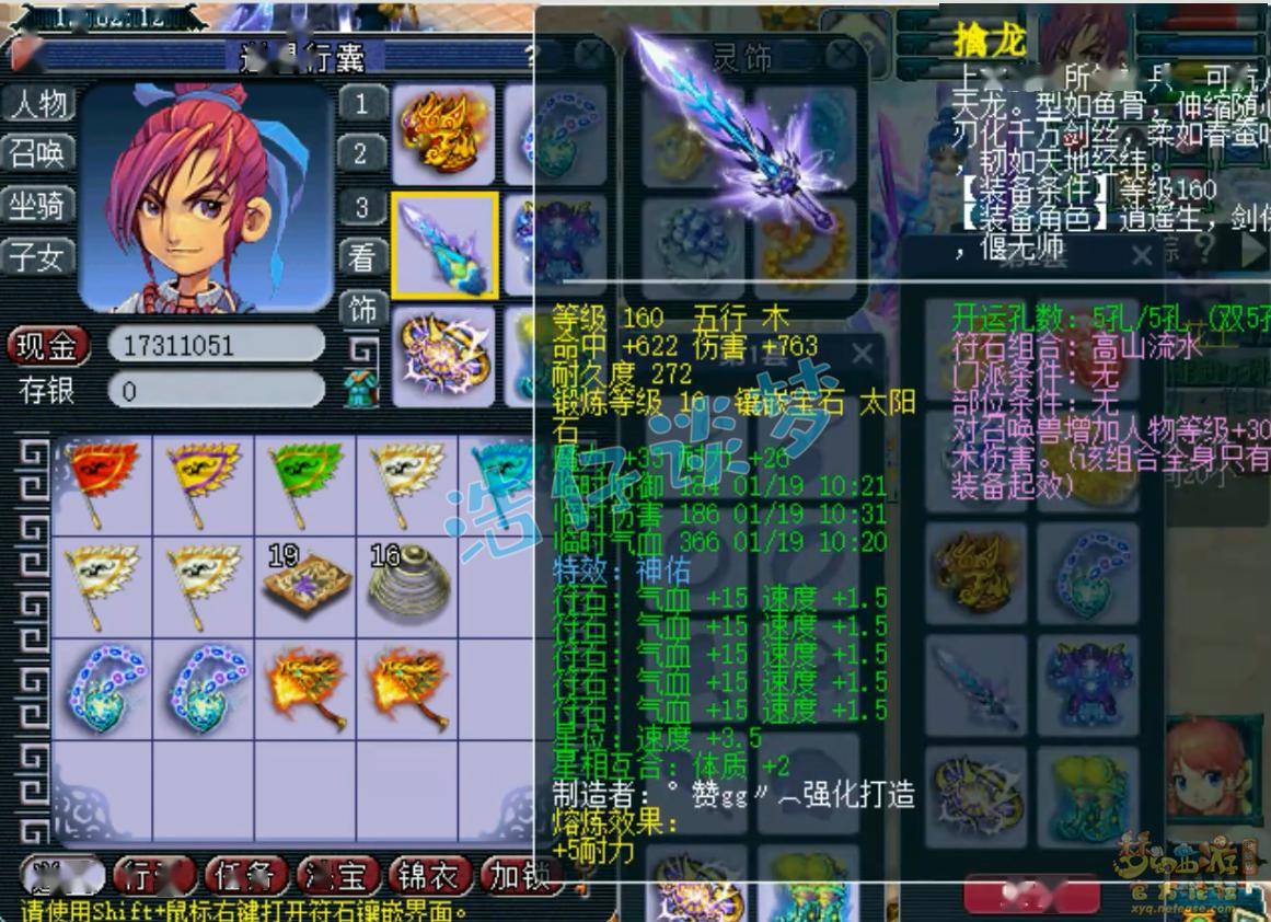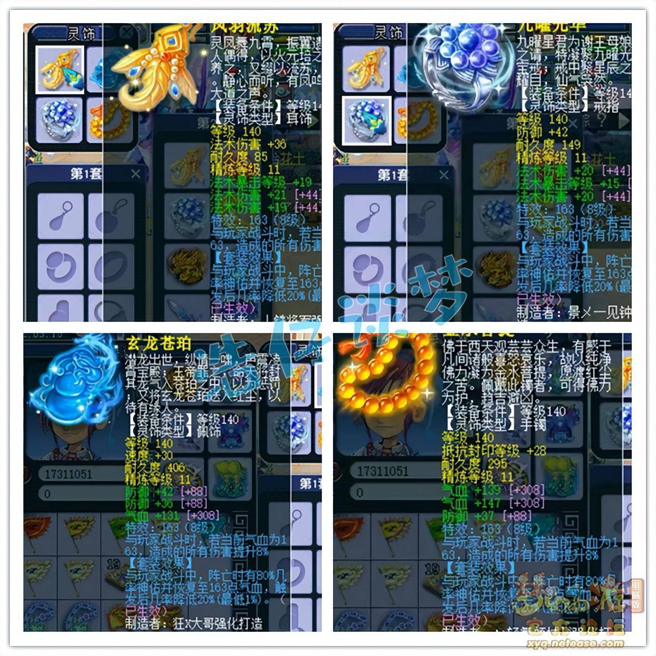 戒指和耳饰下排都是双法伤一法暴,主要还是为了配合装备上的法术暴击伤害,佩饰下排双防御一气血,手镯下排双气血一防御,属性爆了很多,全部打了11锻星辉石,特效8级163。
