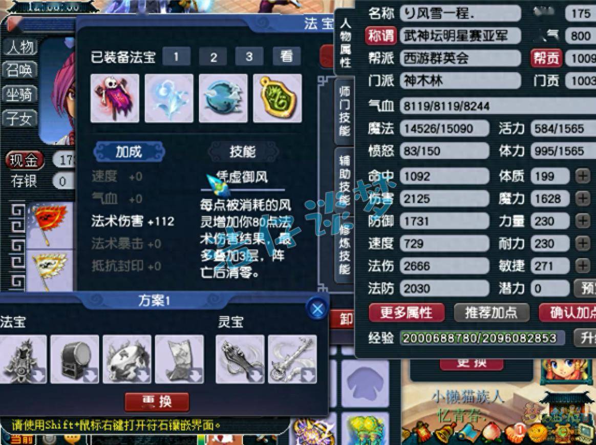 这个号是珍宝阁服战队的法系,这是他带神器没打满临时符的任务面板属性,而且带的是六法暴灵饰,法术暴击几率达到了21%以上,很恐怖!